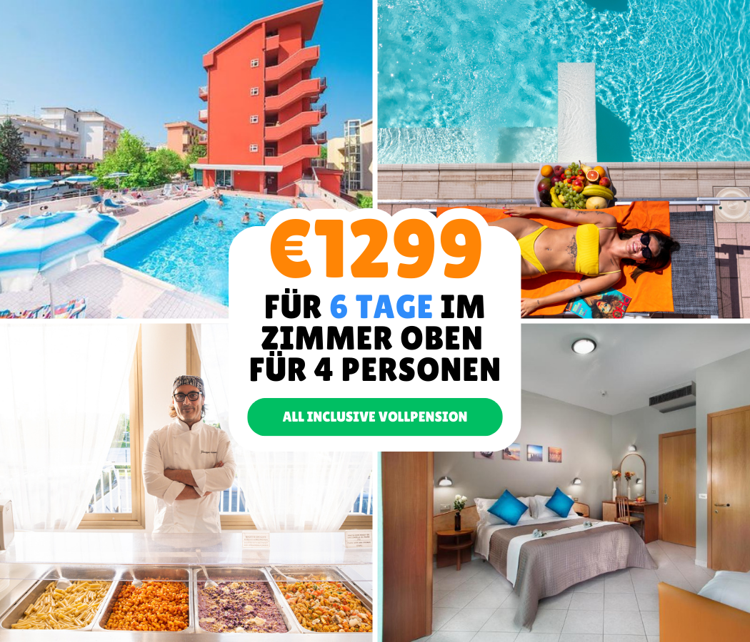 Melden Sie sich an6-Tage-Angebot mit Vollpension vom 24. bis 30. August für 1.299 € im Zimmer für bis zu 4 Personen