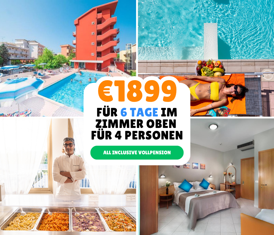 Melden Sie sich an6-tägiges Angebot mit Vollpension vom 9. bis 15. August für 1.899 € für bis zu 4 Personen im Zimmer